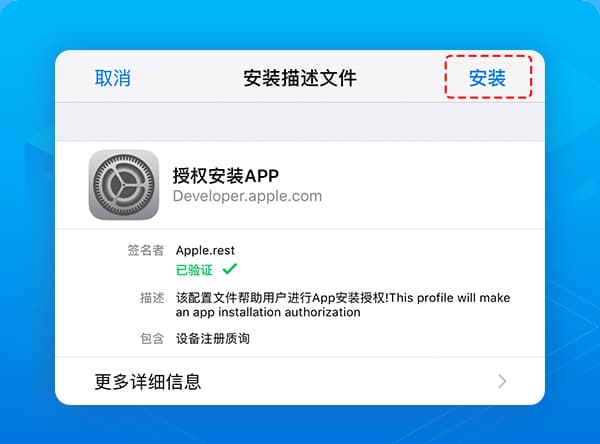 为了确认是设备主人在操作,安装描述文件时需输入【解锁密码】